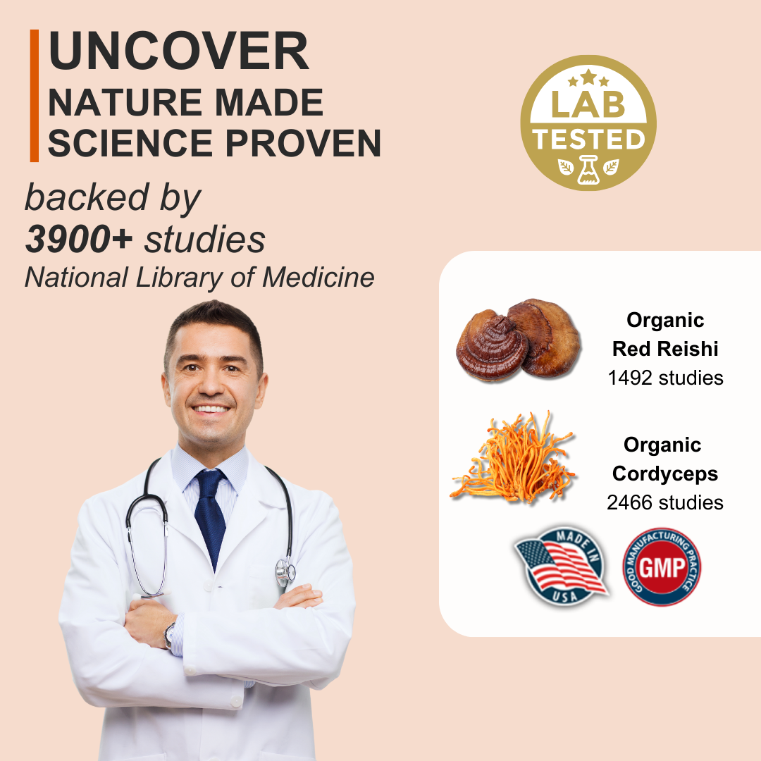 Reishi and Cordyceps contain antioxidants that help neutralize free radicals.They protect collagen and other structural proteins in the skin, reducing fine lines, dark spots, and promoting smoother, younger-looking skin.